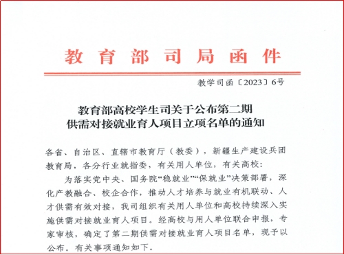 供需对接育人项目的成功立项,是对公司深入开展产教融合、校企合作工作的肯定。学院将继续积极与用人单位加强联系,共同推动项目实施,加强项目过程管理,落实落细合作内容,为项目实施提供环境和条件支持,协调解决遇到的问题,保证项目顺利实施,推动人才培养与社会需求的良性互动,促进毕业生更加充分更高质量就业。