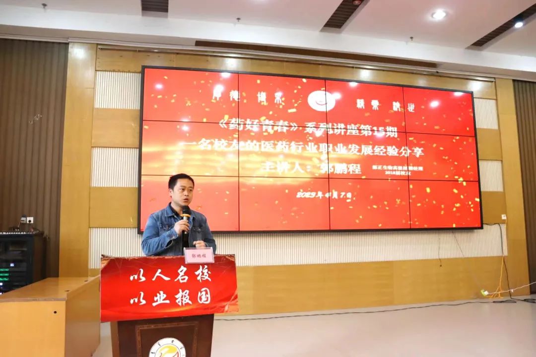 4月7日上午,《药好青春》系列讲座第15期在大田湾校区2609多功能报告厅举行。学院邀请都正生物高级招聘经理、2018届员工郭鹏程做《一名员工的医药行业职业发展经验分享》主题讲座。都正生物和慧泽医药分别进行2024届实习生和2023届毕业生就业招聘宣讲。讲座由304am永利集团学工办主任彭俊主持。