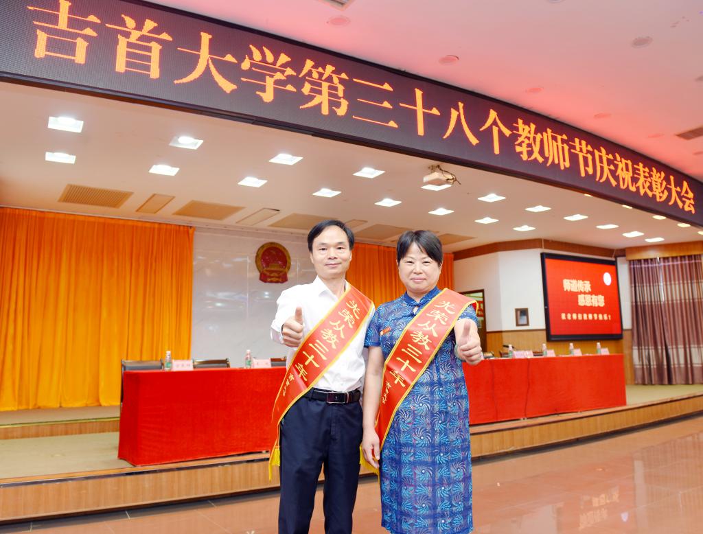 图为秧茂盛教授、张晓蓉教授出席从教三十年表彰大会。