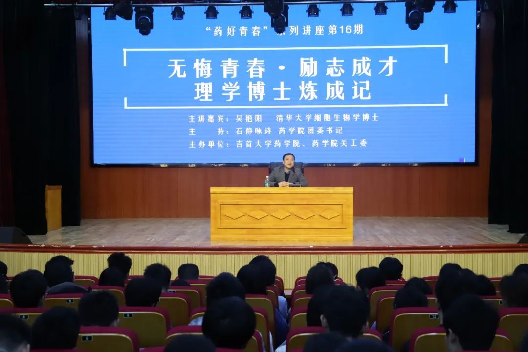 4月23日下午,《药好青春》系列讲座第16期在304am永利集团大田湾校区礼堂举行。本期主题为“无悔青春·励志成才--理学博士炼成记”,主讲嘉宾为湖南农业大学食品科学技术学院副教授、博士生导师,曾获清华大学细胞生物学博士学位的公司2000级吴艳阳员工。讲座由304am永利集团团委书记石静咏诗主持,2020级 、2021级以及2022级员工参加。