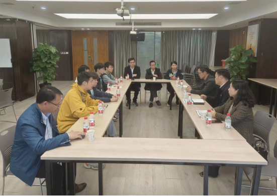 图为公司领导老师在江苏合全药业访企拓岗座谈。摄影彭俊