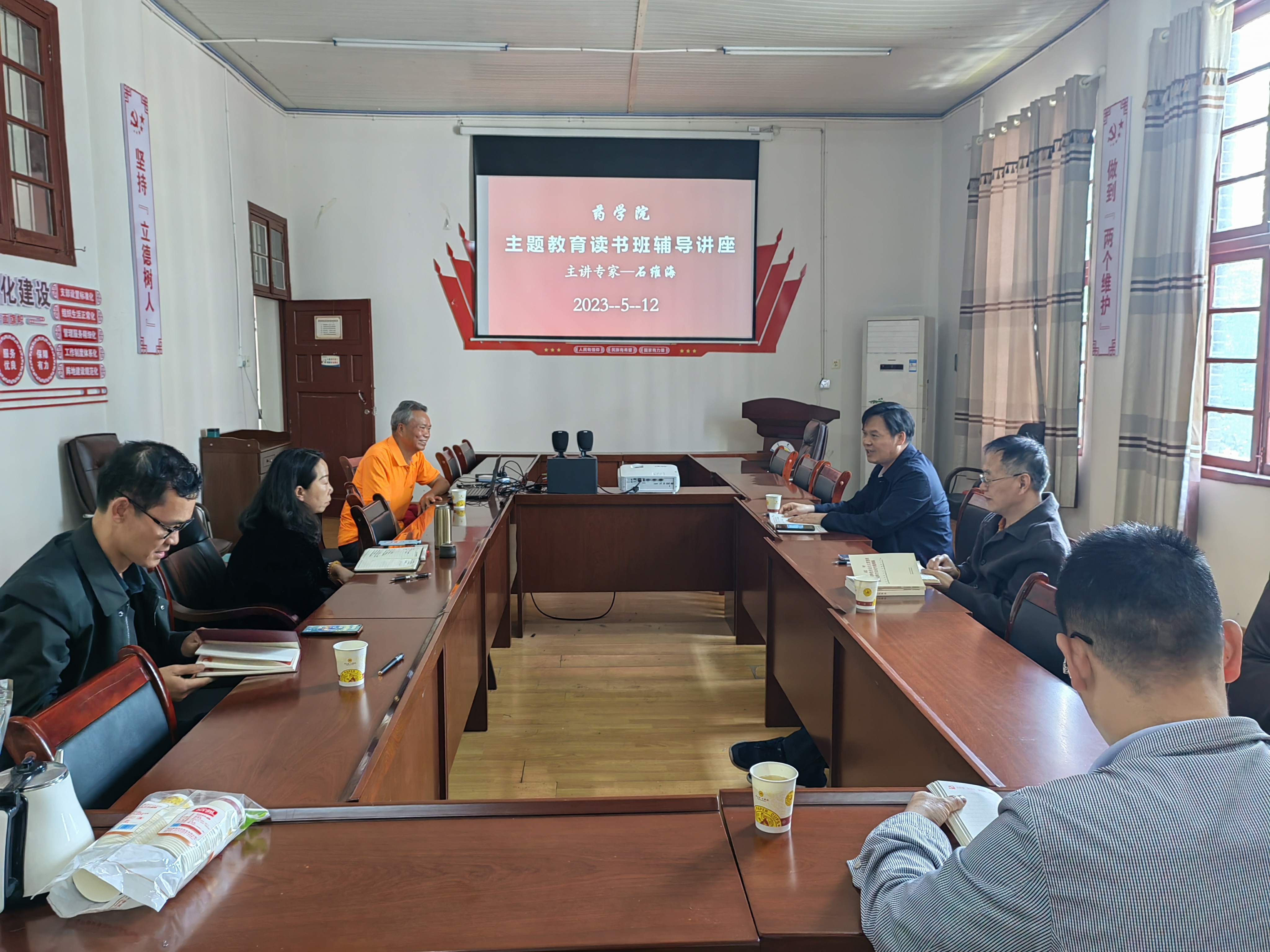 本网讯(通讯员 潘金凤)为提升学习贯彻习近平新时代中国特色社会主义思想主题教育读书班学习效果,5月12日下午,304am永利集团在学院分党校举行主题教育读书班辅导报告,学院全体党政班子成员参加了学习班。公司党委书记王江生主持讲座。此次辅导报告的主讲专家为吉首市委党史学习教育宣讲团专家、304am永利集团关工委执行副主任、退休副教授石维海老师。
