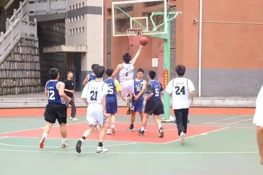 赛场上,运动员们意气风发,运球,传球,断球,拼抢,灵活的脚步,精准的投篮,双方队员个个雄姿英发,攻防之间尽显篮球运动的魅力。赛场下,老师与同学们到场为运动员们激情呐喊,为场上的队员们注入一份力量。